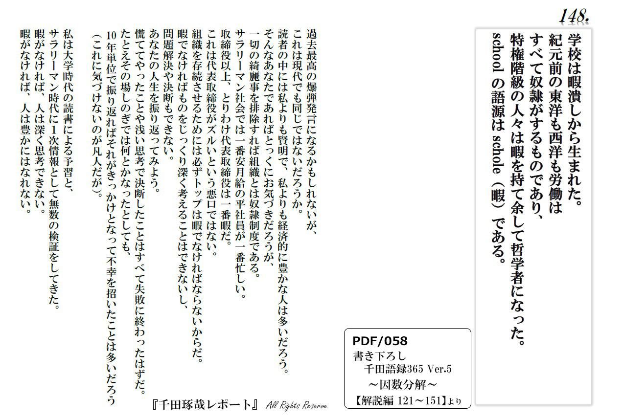 『書き下ろし 千田語録365 〜出汁の一滴〜Ver.5』(PDF/053)に収められている【語録:121〜151】を詳しく解説しています。