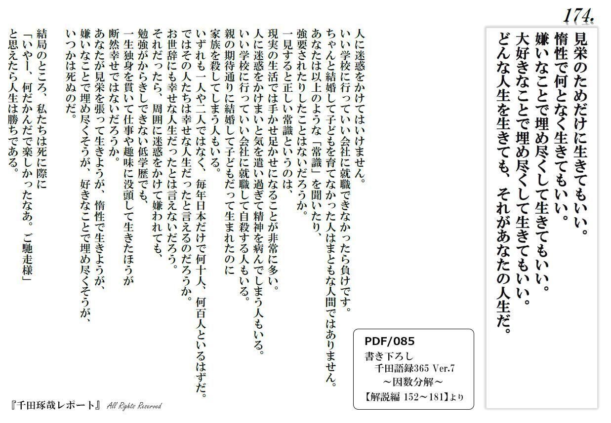 『書き下ろし 千田語録365 〜出汁の一滴〜Ver.7』(PDF/079)に収められている【語録:152〜181】を詳しく解説しています。